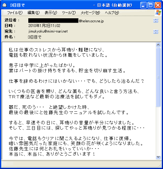 耳鳴り サプリメント、サプリメントなどを使わずに、耳鳴りのストレスと聴力を失う恐怖から解放される治療法です。